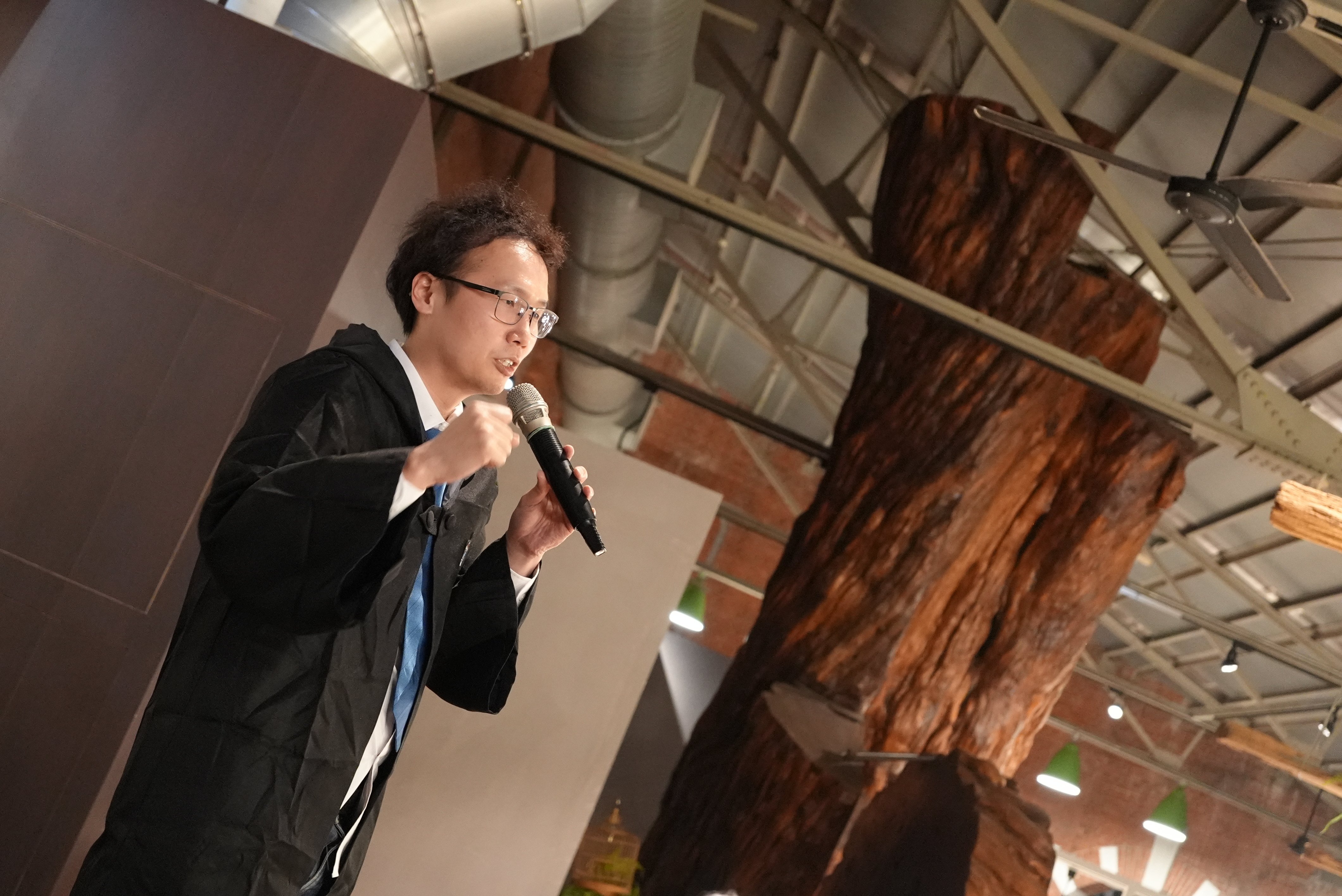 本次尾牙選址於中正紀念堂周邊的【1915 荷造り場】,由雲朗集團君品團隊打造的森林系宴會空間,跳脫傳統飯店宴會廳形式。現場以大量綠意植栽、垂掛燈飾與自然木質元素營造沉浸式氛圍,搭配僅此一廳的高規格包場設計,讓與會同仁一踏入會場,便彷彿走進專屬於域動的魔法森林,氣氛感瞬間拉滿。